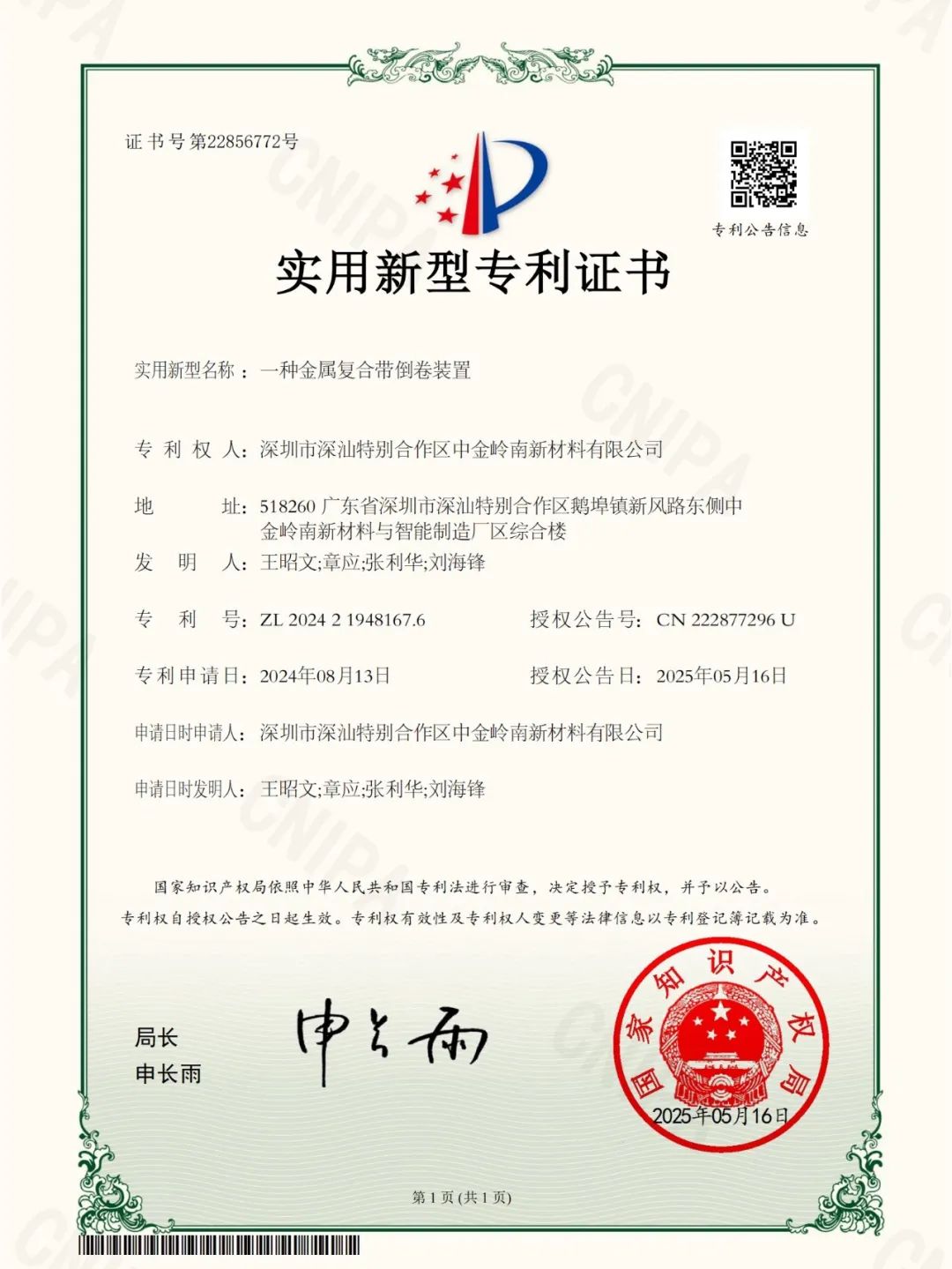 近日,中金岭南(000060)所属中金科技深汕公司多个项目获国家知识产权局专利授权,其中自主研发的“复合金属带、电触头及复合金属带制造方法”获国家发明专利授权,“一种金属复合带倒卷装置”“一种侧面复合金属结构”获实用新型专利授权。
