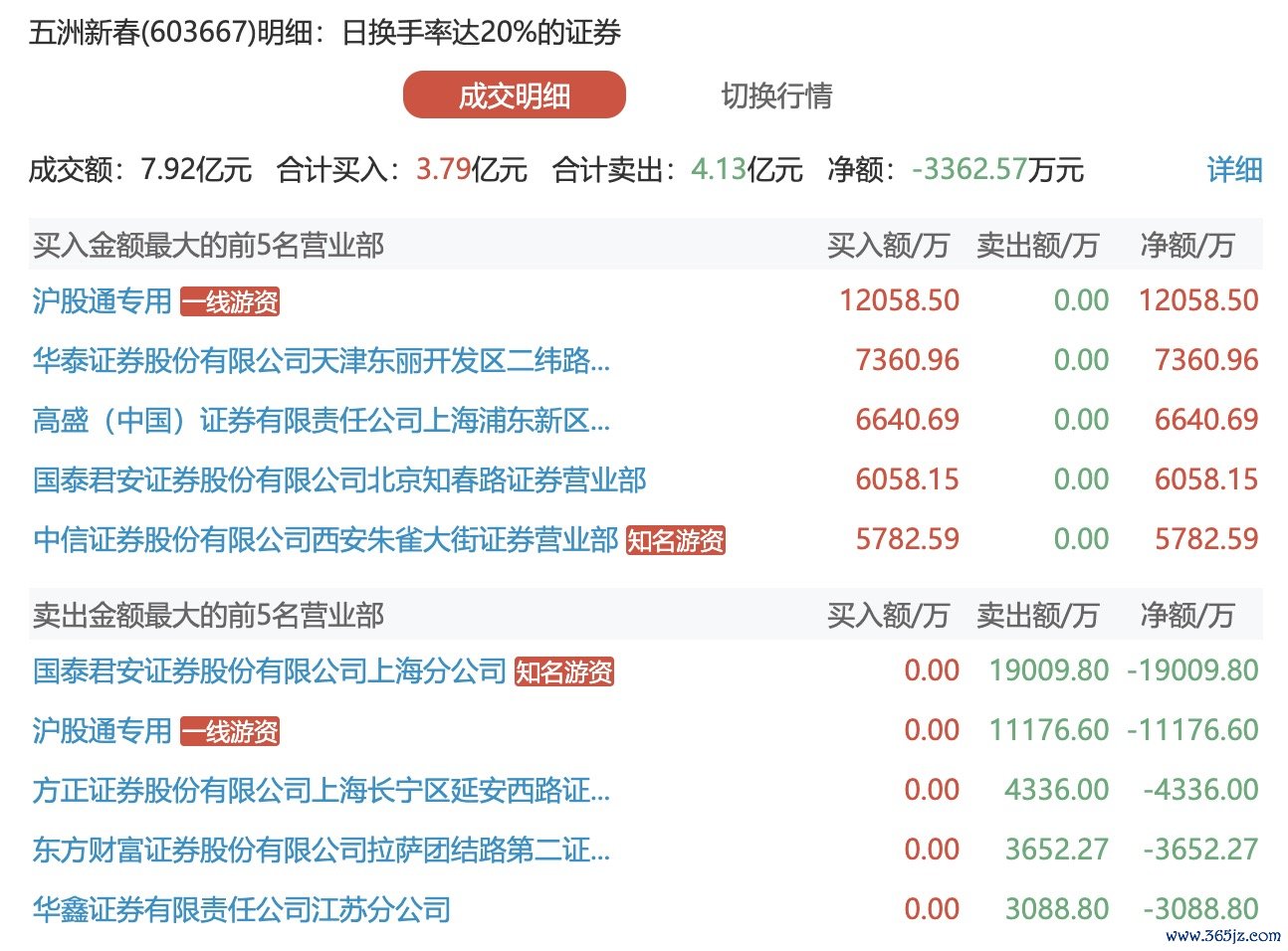 五洲新春今日涨0.96% 国泰君安上海分公司卖出1.90亿元五洲新春今日涨0.96% 国泰君安上海分公司卖出1.90亿元