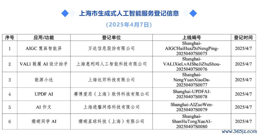 上海:新增6款已完成登记的生成式人工智能服务上海:新增6款已完成登记的生成式人工智能服务