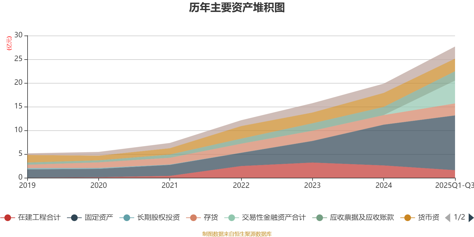 资产重大变化方面,截至2025年三季度末,公司交易性金融资产合计占公司总资产的17.41%,上年末为0;在建工程合计较上年末减少38.62%,占公司总资产比重下降7.32个百分点;货币资金较上年末减少10.52%,占公司总资产比重下降5.34个百分点;固定资产较上年末增加34.35%,占公司总资产比重下降1.59个百分点。