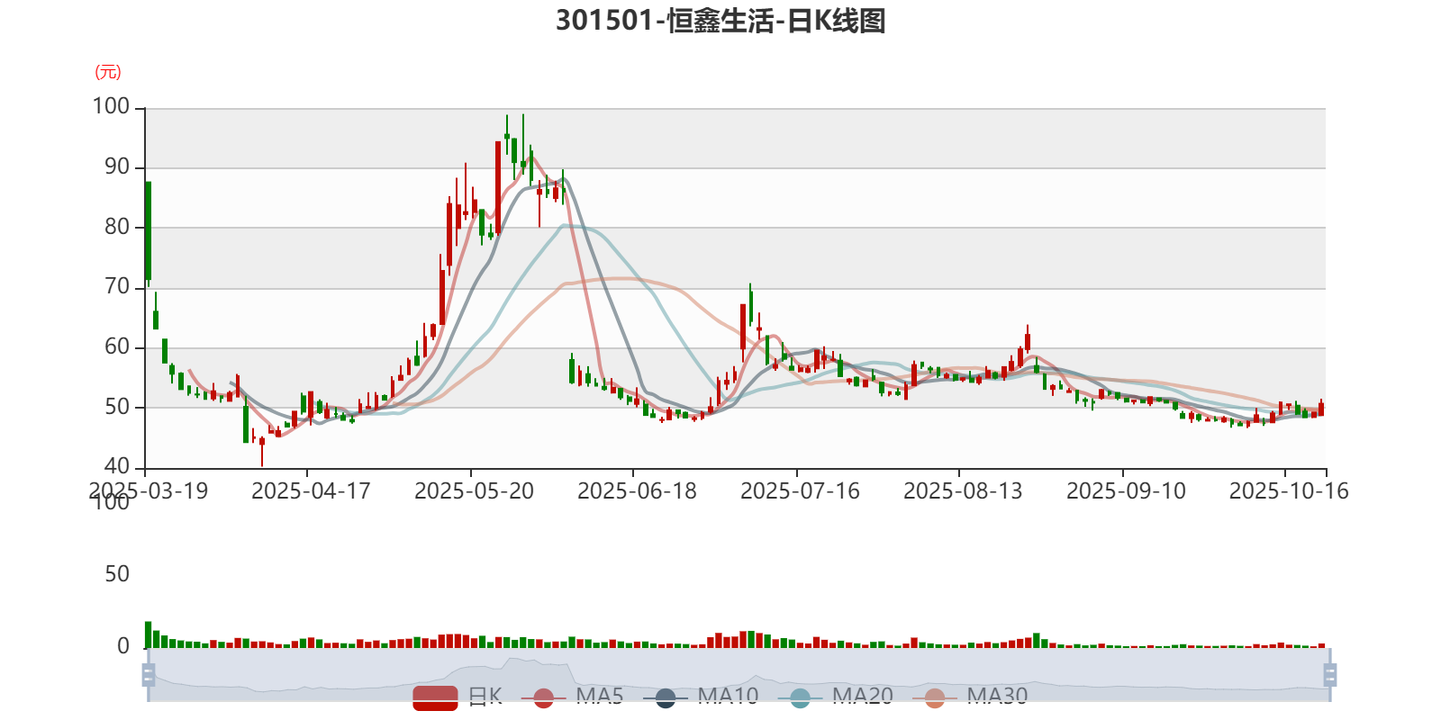 以10月22日收盘价计算,恒鑫生活目前市盈率(TTM)约为30.89倍,市净率(LF)约3.63倍,市销率(TTM)约4.12倍。